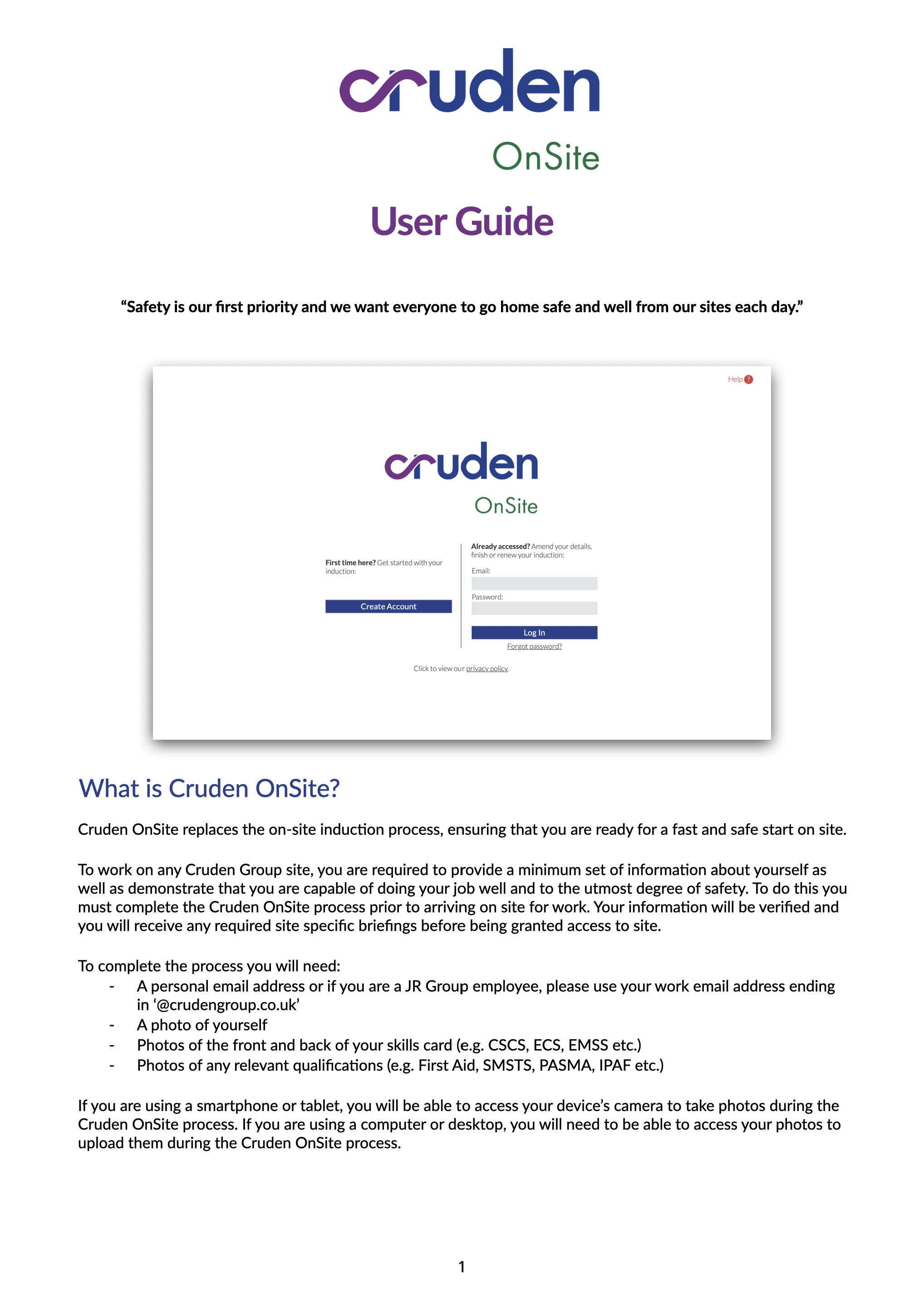 Cruden OnSite is an online induction system. It replaces the on site induction process, ensuring you are ready for a fast and safe start on site.